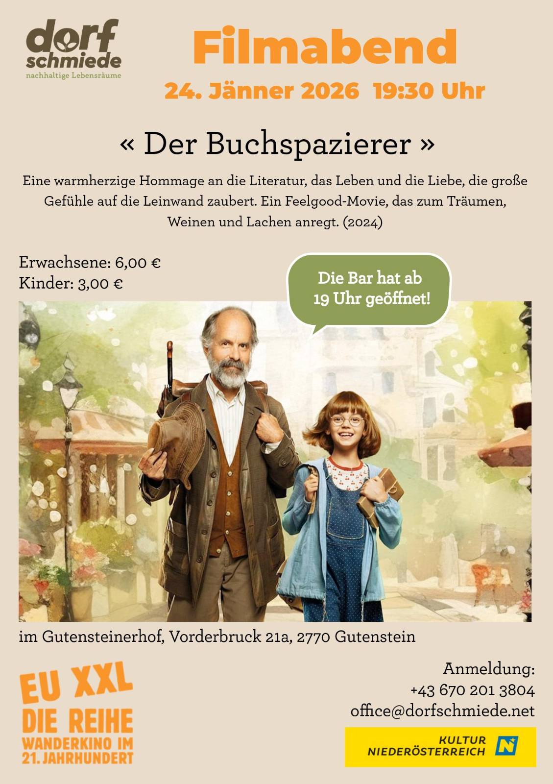 KINO Der Buchspazierer | Samstag, 24.01.2026 | 19:30 Uhr | |